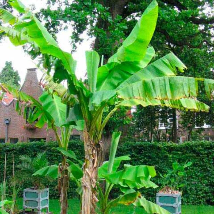 Bananier rustique aux grandes feuilles tropicales, résistant jusqu'à -12°C. Parfait pour créer une ambiance exotique au jardin.
